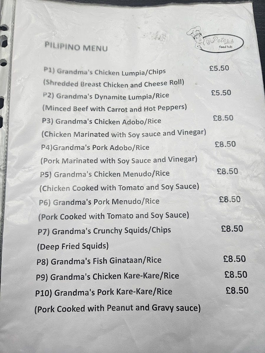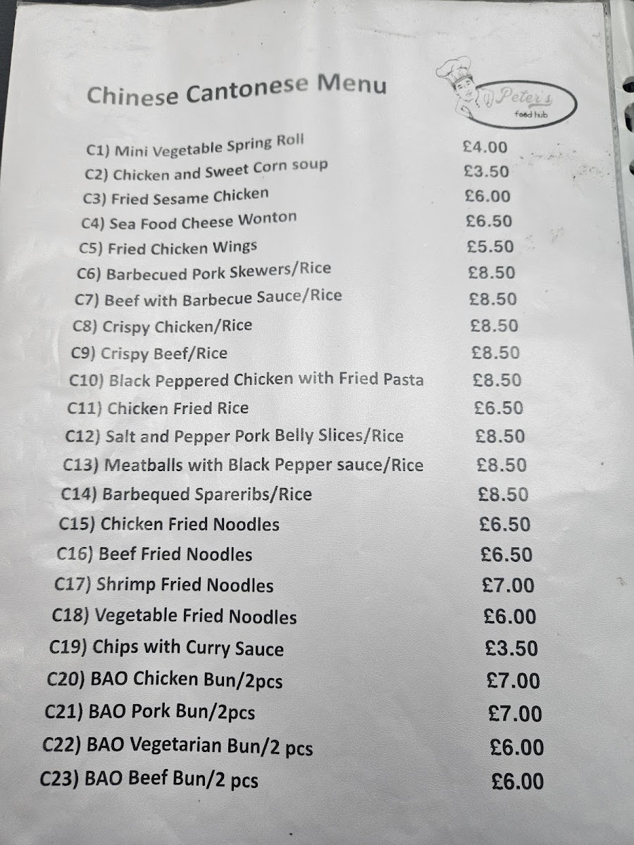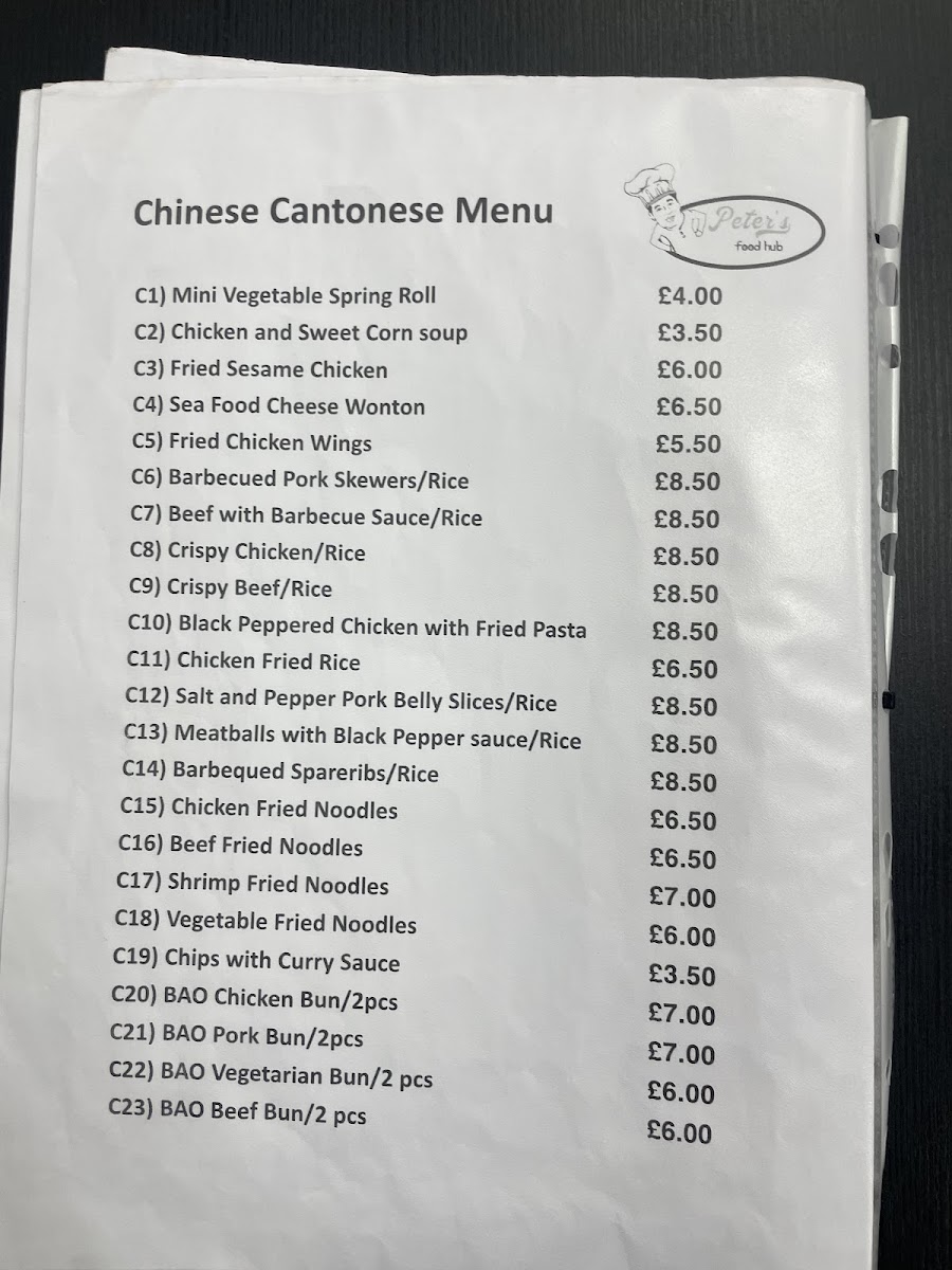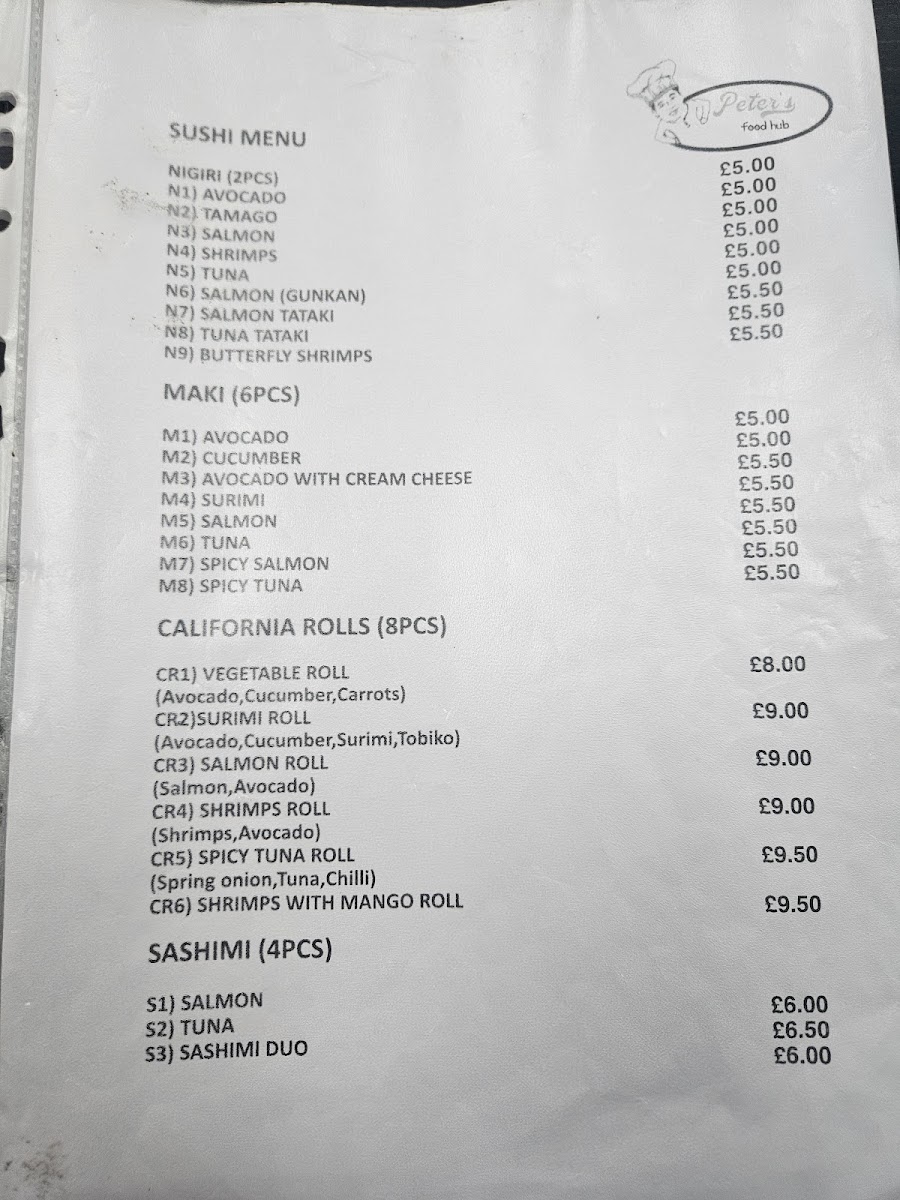 Peter's Food Hub Menu